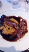 I had the New York steak and fries. The steak was over cooked and grisly and the fries were so so . My husband had the duck ravioli. Neither meal was very good.