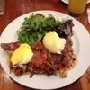 Went on a Sunday morning with friends while on vacation in NYC. What a great spot! Lively and staff is so friendly and efficient! If you like mimosas...go for bottomless mimosas, dont lie to yourself! Price is right, drink is perfect and your glass will always be full! Poached eggs on potatoes were divine - poached on polenta was incredibly tasty and the egg benedict with the hash potatoes with rib meat unbelievable. Really a great find!