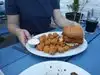I'd heard good things about the food/seasonal menu and the funky decor. It was delicious! We had burgers and fish tacos, along with shishito peppers for a starter. Those were awesome - fire-roasted and drizzled with truffle oil. Out of this world! The inside is all wood - walls, tables, decor and a sea-theme. Cute! We ate outside; beautiful day that actually got pretty warm without the umbrellas up yet. Service was OK; friendly but a little slow/inattentive. I'd go back though - really good food.