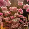 Very different decor with pink ,red and white paper flowers covering the ceiling,I had the lamp chope and creamed potatoes with carrots 🥕 and it was lovely.