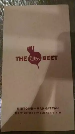 I had two lunches and a dinner at The Little Beet during a 2 day stay in NYC. I had too much to do to spend hours dining (more important to see shows and shop!) and this place fit the bill! Quick, inexpensive, delicious and clean. I am vegetarian and there was plenty of variety to make each meal different. Favorites were the sweet potatoes, lentils and cabbage with soba noodles. Least favorite was the veggie burger that was way too dry. Great staff!