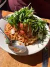 A very nice Italian restaurant with great service. We ate inside but you can dine outside. I had the Gluten Free Tagliatelle w/English Peas, Sugar Snap Peas, Asparagus, Mint & Parmesan. As well we started with some kind of appetizer that was amazing but I cannot remember the name. Highly recommend this restaurant!