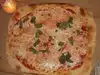 Pizza is oblong, very thin crust, crispy like a cracker, with little sauce and cheese. We added mushrooms and prosciutto. Couldn't chew the prosciutto! The service was slow, but everyone was very accomodating and nice. Would not go again. Guess we ordered the wrong thing!