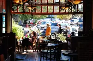 Nice location at Little 5 points in Inman Park. Features roof top dining (as well as inside). Had a few hiccups but overall enjoyed the place.Thought since I was in Georgia I would have the Georgia Mountain Rainbow Trout but they were out of it. Of course it's a wide menu so finding a substitute was not a problem. The wine special was Cote du Rhone but they were out of it. This was not late Saturday evening, this was early Thursday evening! How can they be out of a special then? It all ended well however with a wide selection of apps and a beer. An added treat was a server efficiently carrying off the Amy Winehouse look. Never heard her sing though.