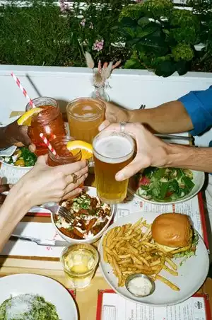 If you're over 40 I'd stay away. It's unbelievably loud, very uncomfortable seating wise, the service is slow and the burgers are very heavy. I know young people love the place. I don't get it. You can't talk to the person across the tiny table from you without shouting above the super loud music, wall echos and other people shouting above all that. The chairs are small and hard. The surroundings look like a bathroom. And yet there are lines of millennials dying to get in. OK. Fine. I'm old.