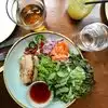 super good, nice service, "‘goi du du’ green papaya salad, viet beef jerky, peanuts, chili lime vin" was excellant. "pan fried e-fu noodle, confit shredded pork, long beans & tea egg", I asked for this to be made vegetarian and they gladly accommodated my request. "shaky shaky beef, watercress, baby tomatoes, burnt butter soy with tomato garlic fried rice" the waitress told my friends that this dish was a house specialty and they enjoyed it very much. can't wait to go back