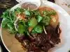 Everything was delicious, the salad, the chicken, and the red and black rice. Spicy, but not too much. Nice ambiance. Smiling and helpful staff. I recommend.