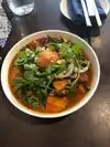 Had dinner here and really enjoyed the variety of items on the menu. The lemongrass beef noodles were excellent and the flavours were fresh and bright. We also had the sesame baguette which is a nice appetizer for 2 and then shared a dessert of hazelnut chocolate ganache; also excellent. Beer and wine to drink; small but decent selection of canned craft beer. It's a bit pricey but I would definitely return to try some other menu items.