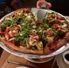 Recommended this place by a guy in the 49ers shop who said his friends like the place. So glad we went way off route to visit. Went for a 'small' half and half (BBQ chicken and spicy sausage) pizza to share as had already had large lunch. Good size, and absolutely delicious! Also had a garlic bread with sauces to share for starters -tasty but felt a little small and overpriced! Wine was good too, average priced. Girl serving us was super friendly and attentive, gave some great recommendations. Have to visit this place if you come across it. We went a 1/2 hour out of our way and no regrets. Really quirky venue. Cant recommend enough. Next time, I'm going large!