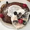 We had the coffee with house made out cream (milk), mixed berry filled doughnut, cinnamon roll (our favorite), grilled cheese and tomato soup, breakfast sandwich (sausage on the side) and lemon poppy-seed pancakes with coconut whip cream and fresh berries. Everything was soooo good. Something for everyone. Wonderful place!