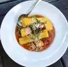 Anyone vegan can feel my pain with caprese salad. The mozzarella has been a difficult thing for me to find that tastes similar to the real thing and not rubbery . They make the mozzarella in house and it’s so bomb. We ordered 2 of them because it’s that good. We also ordered the gnocchi and the polenta. If you have room for dessert it’s well worth it, an adorable small place worth checking out.