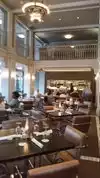 We go here often before a show. We enjoy the beautiful and historic building, the pre-show crowd and, in nice weather, the expansive outdoor seating area with comfortable and relaxed seating. You can order both in the bar and the restaurant. We've done both and enjoy both. Service is good in the restaurant but a little frenetic in the bar before a show. But nice folks work here so it's all good. Good food with a somewhat limited menu; I've enjoyed everything I've ordered. A little pricey but not bad considering it's location. Not many gluten-free options. Signature cocktails only okay, but the beer and wine list is adequate. Nice-sized pours if you order whiskey. All in all if you want an enjoyable pre-theater outing this is a great place to go.
