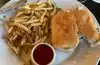 Staying at the Georgian Terrace Hotel, Brunch at Livingston Restaurant. Five meals ordered: three cheeseburgers with fries, Cajun crawfish with eggs and Blackened Chicken sandwich. Burgers were great, cooked as ordered. Fries were so so. Were not hot or fresh. Chicken was very good. The Cajun crawfish and eggs were delightful. The menu was fairly limited for a Brunch service. Was expecting more options being such a large historical hotel.