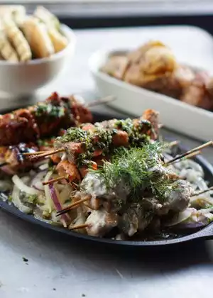 Came for dinner after arriving first night in Seattle. We got our table and got the menu. With a little help from the waiter we made our order of tzatziki with some pita and kebabs with fries. The tzatziki was a bit tame but the kebabs were good. The room was really noisy as it was quite full but it was ok. Overall food was ok so would be between 3 and 4.