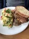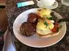Caveat: we sat at the Bar because the wait for a table was 1 & 1/2 hours! But with that in mind the three of us absolutely loved our food! The three of us are vegetarians/pescatarian (we eat fish) so if it called for meat that was removed, except their house made smoked salmon on the Benedict! Those eggs & sauce were a WOW! I had the omelette with incredible mix of feta and another Mediterranean cheese-delicious! And my son’s girlfriend had the vegetarian scramble! The potatoes were excellent! The toast also divine. We also ordered the lemon fig scone so scrumptious that I ordered one to go for my husband. The blueberry jam homemade and superb-real fruit and certainly not overly sugared. We all three this agreed that his was absolutely a return to place. Next time we will make reservations for the well in advance! The bartender was excellent in everything too.