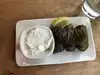 We stopped here for lunch and were very happy with our choice! We had the pistachio spread which was delicious (it’s with a feta/blue cheese mix). I had the salmon kebab and my wife had the squid kebab which both were delicious. The Greek salad side was okay (traditional Greek with no lettuce).
