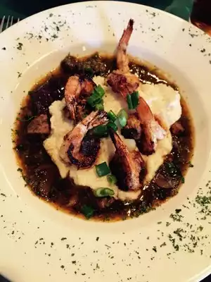 Read the reviews in TA and since we like Nola food, decided to give it a try. My husband had little hush puppy balls which was an extremely small serving-4 marble sized balls. Taste was just ok. I had a delicious and plentiful salad with nuts, oranges and craisins. Our main courses were much better. My blackened shrimp with Gouda grits was very good but very spicy. My husband had jambalaya but they charged extra for the shrimp in it. He said it was very good. The sweet tea was very good and helped with the spiciness. Bananas Foster was a delicious end to this dinner which wAs priced fairly.