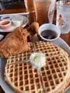 Best soul food , we were lucky no wait , server excellent and meal the best. Chicken and waffles and hubby had chicken and catfish , Mac and cheese and greens . Dessert yummy peach cobbler egg rolls ,