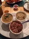 The sauces are divine, the special of the day was roasted garlic with garbanzo and steak. We try to go once a week