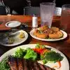 My husband and I split a 16 oz ribeye and sweet potato fries. It was plenty of food for people watching their portions. The ribeye was flavorful, but not as tender as I expected. We were able to cut it with a knife easily, and it did melt into our mouths. The service was good by Christian and he was attentive to filling my water glass and checking with my husband about his beer. The food was served HOT, and I really appreciated the fries that way. We enjoyed outdoor seating and were able to look over the Riverwalk and river.