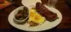 Good food! we had the ribs, fries and green salad, combi of sirloin steak and shrimps and Ceasar Salad and we had porkchops with fries and green salad