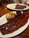 Wait staff, baked potato, bread --all very good. Ribs were excellent and fell off the bone as they should have. The filet mignon was tough and dry. A major disappointment since the steak is the reason we went there.