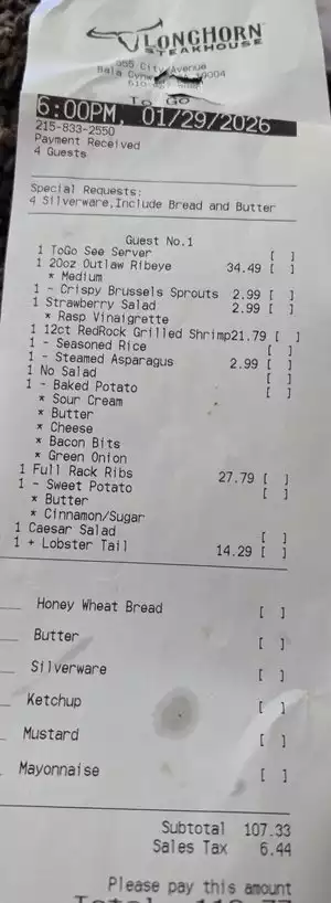 On Tuesday March 19th, 2024 I visited your location at 1001 Baltimore Pike, Springfield, PA 19064. I was there between the hours of 7pm-8pm. I ordered the lamb chops with a side of mash, and a side of pilaf rice. When i ordered my lamb chops I asked for them to be well done. I was told that the chef prepares the lamb one way and that it would be brought out medium rare. I asked the water why can't I order my food the way I normally would at any steakhouse. He then stated that the lamb is prepared the way they like it due to the fact that when customers order well done lamb it dries out, and then most customers send it back. So I surrendered and went ahead and ordered the lamb. Well low and behold the lamb came out. It did not come out medium rare. The inside of the lamb was bright red. It was not pink. To make a long story short My husband and I asked for the check and we left. The waiter did not apologize for the lamb chops didnt even come out as he said they would. I did not eat the amb. I had to take the lamb chops home and cook them myself. This was unacceptable. Yous guys promote yourself as a steakhouse it needs to be one. I understand that the lambchops are a promo right now and perhaps maybe the chef is tired of preparing them all day long but you do not take that out on a customer. This has left a sour taste in my mouth and i will post this review to make others aware that longhorns gives you what they want you to have.....point blank..