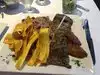 Great views, fast service albeit not the most friendly. We weren’t too hungry so ordered small bites only. Ceviche (tiny portion but tasty, not really for sharing), plantain chips (deliciously crisp yet chewy, again a small Portion, just a handful), quesadillas (big enough to share, cheesy and delicious) and chicken tacos (3 soft fresh tortillas packed with tasty pulled chicken filling) and tostones (cheese and chorizo topping. Delicious). The sangria was also popular.