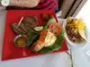 I had lovely time at this restaurant the good was fresh and plenty of it, Our waiter was excellent started of with some bread and selection of tapas which was delicious had to stop myself from eating it all or I wouldn’t have eat my surf and turf which was amazing, my husband is so fussy so when he got sweet banana on his plate with his steak he was pleasantly surprised that he liked it and asked for more. Just wish they were in the uk or I would be there all the time.