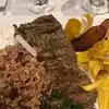 Dirty table cloth, tough meat, approximate service. Lunch started with dry bread a a tris of tasteless sauces, including plain oil infused of fresh onion and room temperature squabby pickles. Tipical American fail on restoration