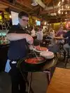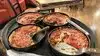 Restaurant is VERY busy. We checked in and were told a one hour wait. It was also recommended that we pre-order our meal as each pizza takes an additional 30-40 minutes to cook if you order once you are seated. We opted to order once we were seated as we were not in a hurry. We were sat right next to the busing station as were several other folks. This is not the place to relax and sit back to enjoy your time. Tables are being turned over quickly. The service at the bar was horrible. I sat there for a long while with eye contact with the bar tender with zero communication as to “can I help you” being uttered. Our server at the table was great however. The pizza I had was very wet on the bottom. One thing we noticed was any larger pizza was served in the pan from the oven. Ours were put on a plate.