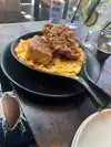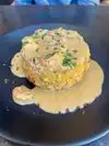 While volunteering at a charity wine event I had the pleasure of working next to the table from Louisiana Purchase and Chef Q was serving up his gumbo. The managers gave me a $10 card to come try this newer restaurant in North Park. I finally made it there to celebrate Mardi Gras on Feb 25, 2020. They were all decked out with beads and masks. This stylish space flows from inside to the open air patio but I sat up at the sleek bar. Had to start off with a Hurricane cocktail in honor of Fat Tuesday on Bourbon Street. But I knew I wanted the Chef Q culinary masterpiece, the signature Alligator Andouille Cheesecake. It is savory and deliciously rich topped with crawfish cream. It's pricey and would have been good to share, but Fat Tuesday meant I ate very bite of it plus another cocktail. When I do splurge I appreciate having ambience and creative food and cocktails and I got all of that here. Thank you.