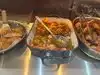 Pleasantly surprised to see seafood getting its due respect in airport eating. Offers tilapia, salmon, shrimp and tuna -- the former three cooked in southern style. I would have liked to see the baked tilapia with lemon sauce not overcooked and retain its flaky texture. The sauteed shrimp were large and tasty. Had french beans as the side -- fresh, crunchy and cooked just the right way. Food was a bit expensive but delighted to see an option to have protein meals, especially seafood proteins.