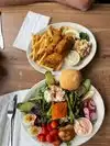 Pretty barebones wait service and limited ffod choice, but the sampler crabcake, fish, prawns, etc meal I had was very nice - good veggies too! Nice viewing over the water too.