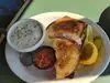 I had the world famous fish and chips, that a friend had recommended. Cole slaw was really old. Both the cod and the French fries must have been prepared when the cook was on a cigarette break. They were left in the fryer too long. Fish was dry and the fries were matchsticks. Disappointed