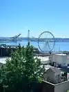 Sat by the window and had a lovely brunch overlooking Elliot Bay and the carousel-yummy Bloody Mary rimmed with the perfect celery salt!I enjoyed their salmon and capers omelet and my daughter had their breakfast sandwich...which they were happy to substitute avocado for sausage as she is a vegetarian...our waitress was friendly and came with coffee refills without prompting-am very glad we stumbled in here:)