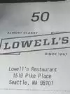 Lowell's is in the Pike's Place venue. Very busy but line moves fast as staff is very efficient. We were there for lunch and was not disappointed. Opted for Reuben sandwich and clam chowder. Well prepared and very tasty