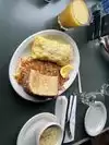 Food is mediocre at best. Not worth spending your money here. A chain restaurant like Denny’s offers better service and food. Cold food, no flavor... definitely not fresh.