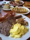 Weekends they now do breakfast......cheap, fast and really really good. Only weird thing is assessibility of coffee. I'd rather be able to get my own, especially refills. But a nice selection including pork chops.