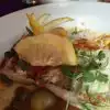 The food was delicious, when it finally arrived after a 45 minute wait. Drinks also good, but way too long a wait. No excuses and no apologies. Our server did not seem very well trained and had no idea how to work a table. He was never there when he was really needed. We waited a long time after finishing eating to get someone to pack up the leftovers. We waited SO long for someone to get our payment that my husband finally tried to take it to the bar and pay there. He was rudely rebuffed by the bartender who falsely claimed that they were "really busy". The place was 3/4 empty at this point. It's a good location with good food. Train or re-train your staff.