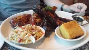 I came here with a big group and had an amazing experience! The staff were super friendly and accommodating, and they handled our large party size meals. The food came out quickly, everything was fresh, hot and delicious, from the ribs to the tri-tip and all the classic sides. The family-style portions were perfect for sharing, and the atmosphere was great but comfortable. Definitely a great spot for big group gatherings or celebrations. We’ll absolutely be back!