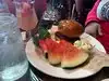 BBQ isn't my favorite so I wasn't thrilled to be here, but we had a large group (8 people) and they wanted to eat here so I went . I was HAPPY to see the steak wedge salad . That's what I ordered. I had it medium rare but the steak was a little tough and chewy for what I'm used to. For me, there wasn't a huge selection and I was REALLY wanting steak that night. It wasn't fabulous. AND, I ordered avocado in addition. They gave maybe 1/8 of an avocado for the upsell. They did have a great selection of sugar free iced tea - watermelon I tried - and peach is what I drank. They were great with special orders - hamburgers without buns, that type of thing. Our waitress was a lot of fun! She was easily able to give us separate checks. We were fairly late at night - I want to say 8 pm or later. We had a great table. Service came at an appropriate period of time (not slow like the Cafe). If you like BBQ, this may be a great place for you.