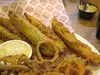 The food was delicious and very tender. David, our waiter, was very attentive and we had a great meal. The portions were large and a half order of the onion strings were more than the both of us could finish.