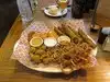 Ordered a secret menu hot honey chicken sandwich with a Mac/cheese side. Sandwich had way too much slaw on it and the chicken breast was in 2 pieces. Server never and came back to check on me or refill my beverage so i ate most of the spicy sandwich with an empty drink. Poor service, won’t return