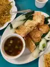 We happened upon this little restaurant in Chinatown. We ordered the Taro Roll appetizer. It was amazing delicious! I was so sad we had just tried a nearby Chinese bakery. We were not hungry enough to order much. I would have loved to try a ton of appetizers. The tea was subtle and perfect. I cannot recommend the taro rolls enough! We had them with a sweet dipping sauce and Sambal hot sauce. I will be back to this restaurant on future trips to SF.