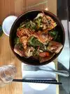 Loved this lunch experience! The brussel sprouts flash fried with lemon grass soy was wonderfully yummy. Nice selection of dumplings and bowls you can create. Future trips I will try to eat here. Simply delightful.