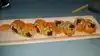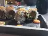The sushi was pretty good and good range of prices. Spicy edamame was the BEST! The Eye of the Tiger was our favorite roll. Nothing super fancy, mostly average size rolls and came in 6-8 pieces. Fun decor and bench swings for seats. Nice waiter but service was so-so. Would go back.