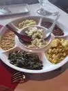 Great service, delicious abundant food. We ordered the meat and veggie combo platter because we wanted to try a variety of different items. It would have easily fed 4 people! Our server was happy to explain the dishes and answer all our questions. If you enjoy sweet wine, ask for the honeyed wine. Delicious! Sit in the lounge for a more relaxed and colorful environment.