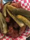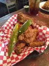 I'm a pretty picky fried chicken eater, so I thought I'd give Lucy's a whirl this afternoon to see if it's any good. Pleasantly surprised to not only was the chicken pretty good, the service was excellent. Dani was great with service and smiles. The fried chicken was just a tad on the oily side, actually not so much the chicken as the basket, like they might not have let it drain quite long enough. Probably just a one time thing. Chicken was seasoned, breaded and cooked perfectly. And it was actually able to eat, not still 375°. That was nice. The basket comes with a pickled jalapeno wedge and pickle. The tea was good and it was fresh. Their Bayou Betty Hot Sauce was decent, and more with a higher temp if you are so inclined. All in all, I'm going to try some other things on their menu next time, like the grilled oysters, CFS and mountain oysters next trip. And maybe a couple of those cold beers I saw.