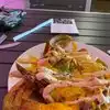 Visited for lunch. Very clean and socially distanced seating. My wife and I split a full size plate of the Caribbean Nachos with pork. It’s a lot of food for the price. Very tasty!! Sweet tea was very good too. Service was very friendly and fast. Their food is excellent and price is good especially for the quantity. Easy A+ and recommend!
